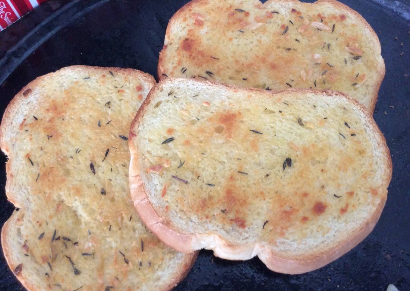 - Pre-heat the oven to 350°F. Put the bread in and let it start getting golden brown. Once you see it getting golden brown flip it and when ever it reaches your desired golden brown is when it's done.