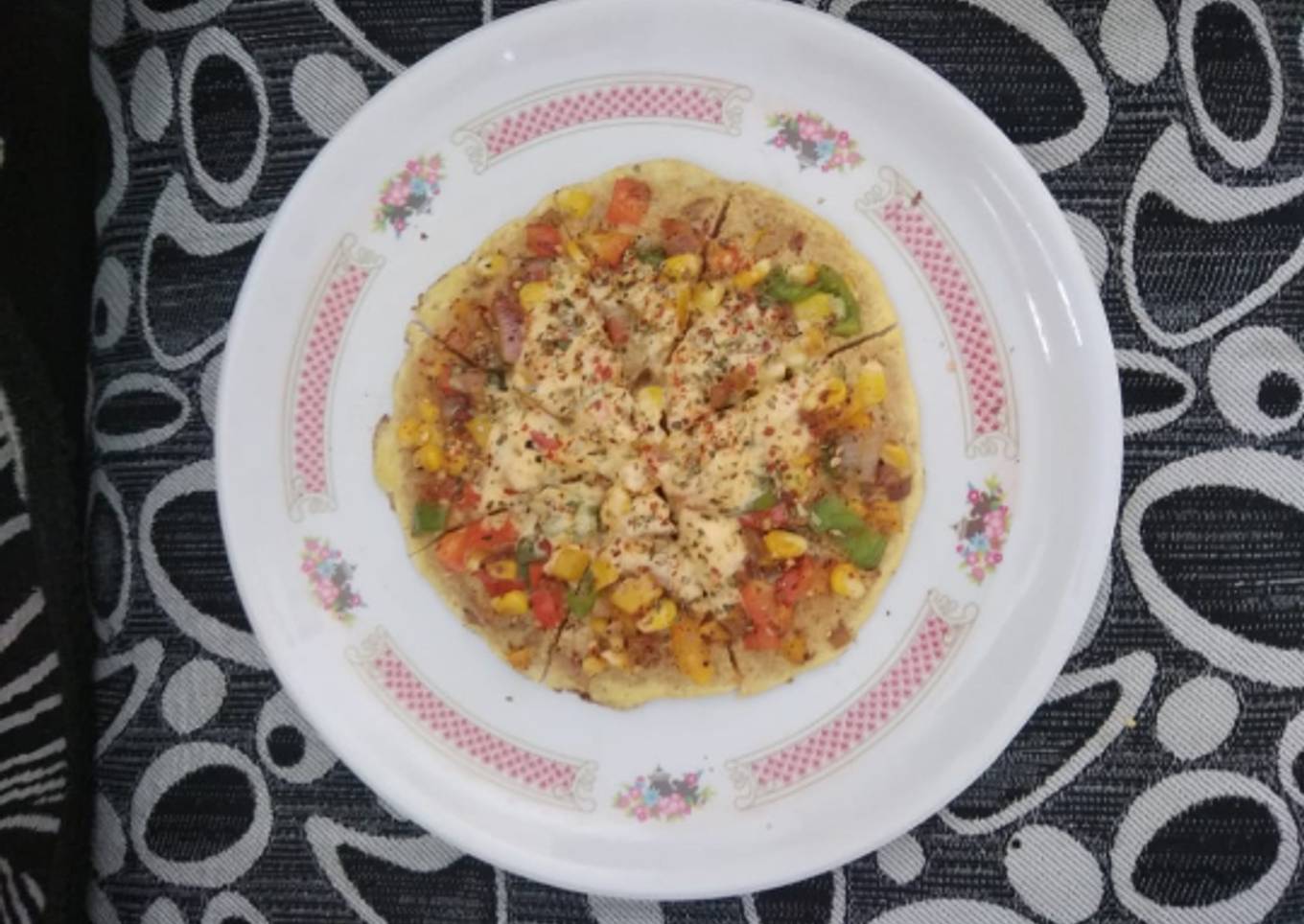 - Finally sprinkle little salt, pepper and pizza seasoning.