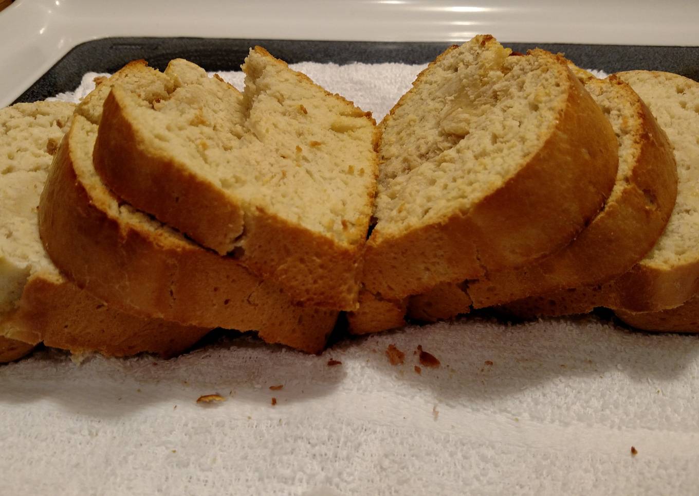 - Bake bread for approximately 30 minutes or until it sounds hollow when lightly tapped on the top.