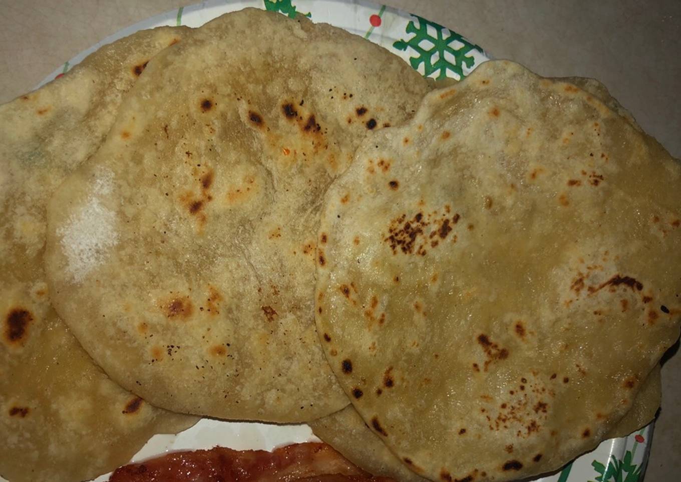 - I love this plain or with eggs and bacon, it’s good with stir fry or any traditional Indian food. Some recipes call for letting the dough rise for 45 minutes but I notice no difference in taste by not allowing it to rise.
