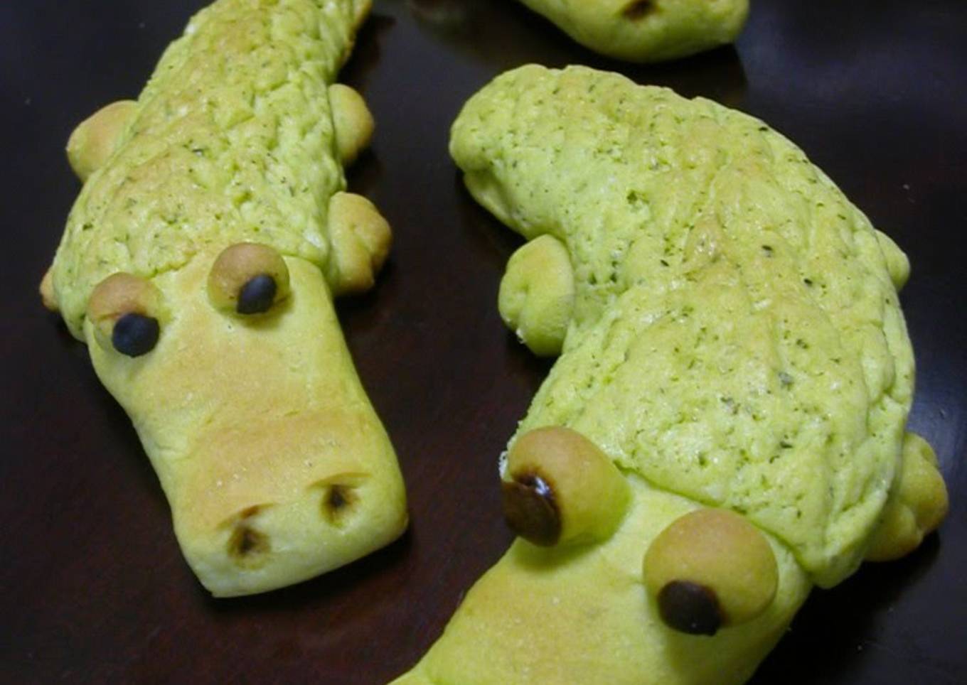 When I tried making turtle-shaped bread I noticed that if the body was a bit longer it would look like a crocodile so I tried to make it that way.